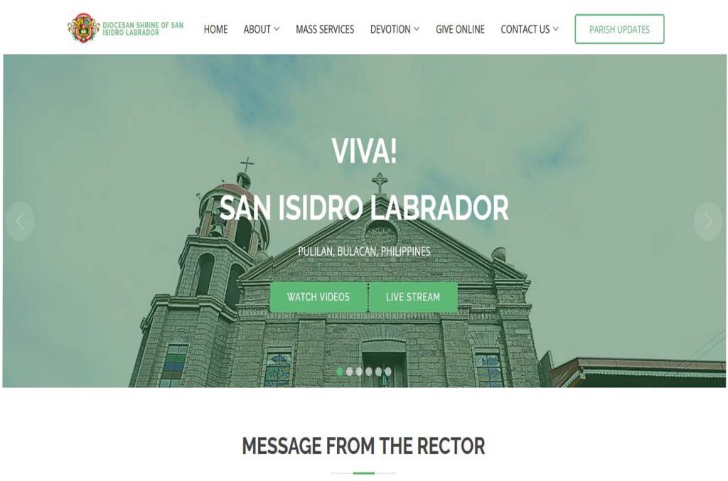 Diocesan Shrine and Parish of San Isidro Labrador Website Web Development Programming Language Used: HTML, CSS, Bootstrap, Javascrip, PHP